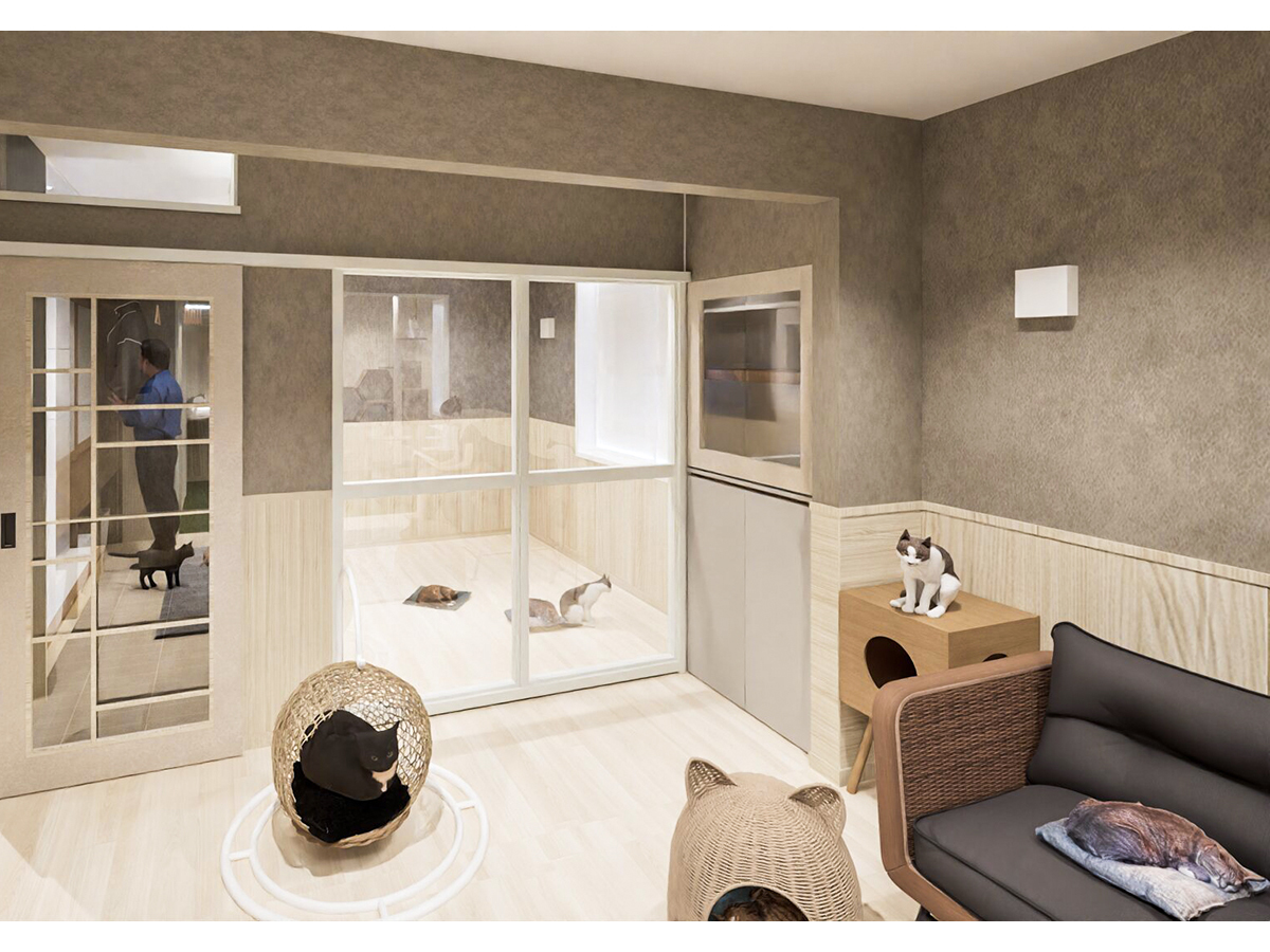 長年獣医師・保護猫ボランティアとして活動している施主が運営する、保護から譲渡(TNTA)までを行う新しいコンセプト・運営形態の施設「保護猫ラウンジ」の計画です。