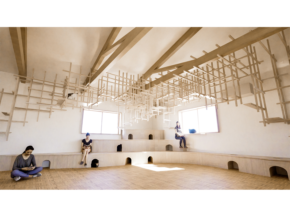 <くも>はキャットウォーク、<なみ>はキャットトンネル、キャットハウスとしても計画しています。