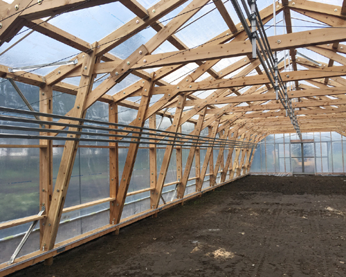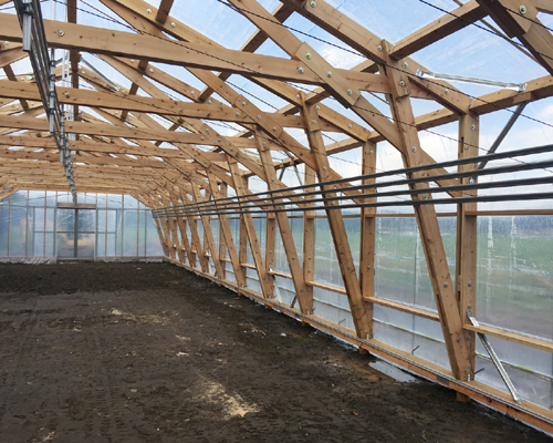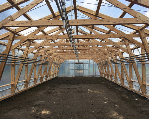 地場の間伐材を利用して、木造のビニルハウスをつくる実験的な仕事です。