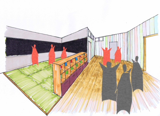 仙台市泉区に位置するテナントをリノベーションして放課後等デイサービスにする仕事です。事業者・指導員の方々と、様々な障害の特性に対応する機能性、安全性等の打合せを重ねながら、最終的に「子供たちがわくわくする施設」にすることを目指しました。