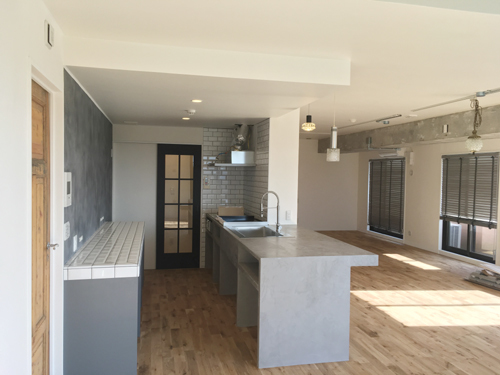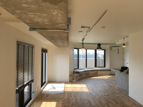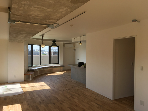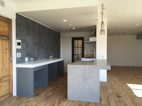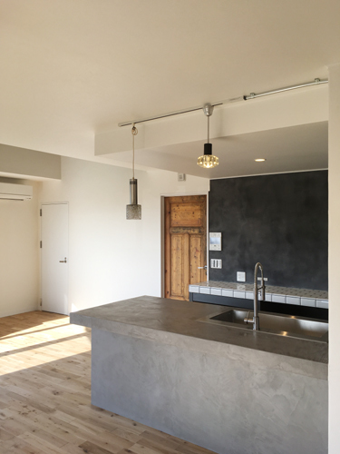 カラーズと協働し、泉区のマンションをリノベーションした仕事です。この家は、仕事柄様々な場所を移り住んできた施主から家族への感謝の思いとして計画されました。施主の要望はキッチンを暮らしの中心・主役とすること、自然豊かな眺望を楽しめることでした。家族がキッチンに集まって一緒に料理や話をする姿、リビングでくつろぐ家族や、自然を望みながらキッチンで料理をする姿をイメージしながら取り組みました。キッチンが文字通りに家の中心となるよう、また眺望を確保し、リビングダイニングと一体となるよう既存の間仕切り壁を撤去しました。また、仕上・住宅設備も一新し、「新しい家」として生まれ変わるように配慮しました。この「新しい家」が、思い描いてきた理想の暮らしの素地になればと思っています。