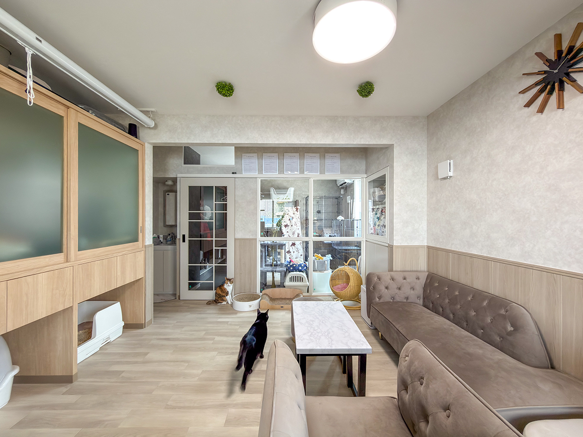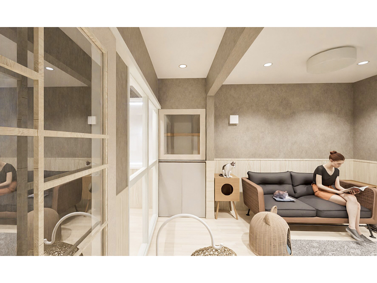 長年獣医師・保護猫ボランティアとして活動している施主が運営する、保護から譲渡(TNTA)までを行う新しいコンセプト・運営形態の施設「保護猫ラウンジ」の計画です。