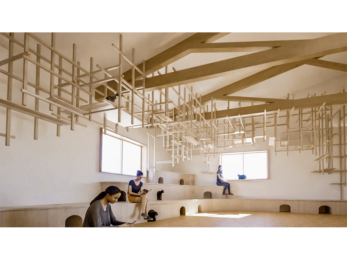 <くも>はキャットウォーク、<なみ>はキャットトンネル、キャットハウスとしても計画しています。